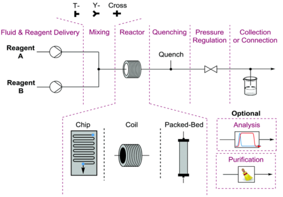 連續(xù)流合成范圍及領域不斷擴展,不但包括傳統(tǒng)的反應類型及醫(yī)藥及精細化工行業(yè),還延展到電化學、光化學、微波化學、納米材料以及功能材料等領域。
